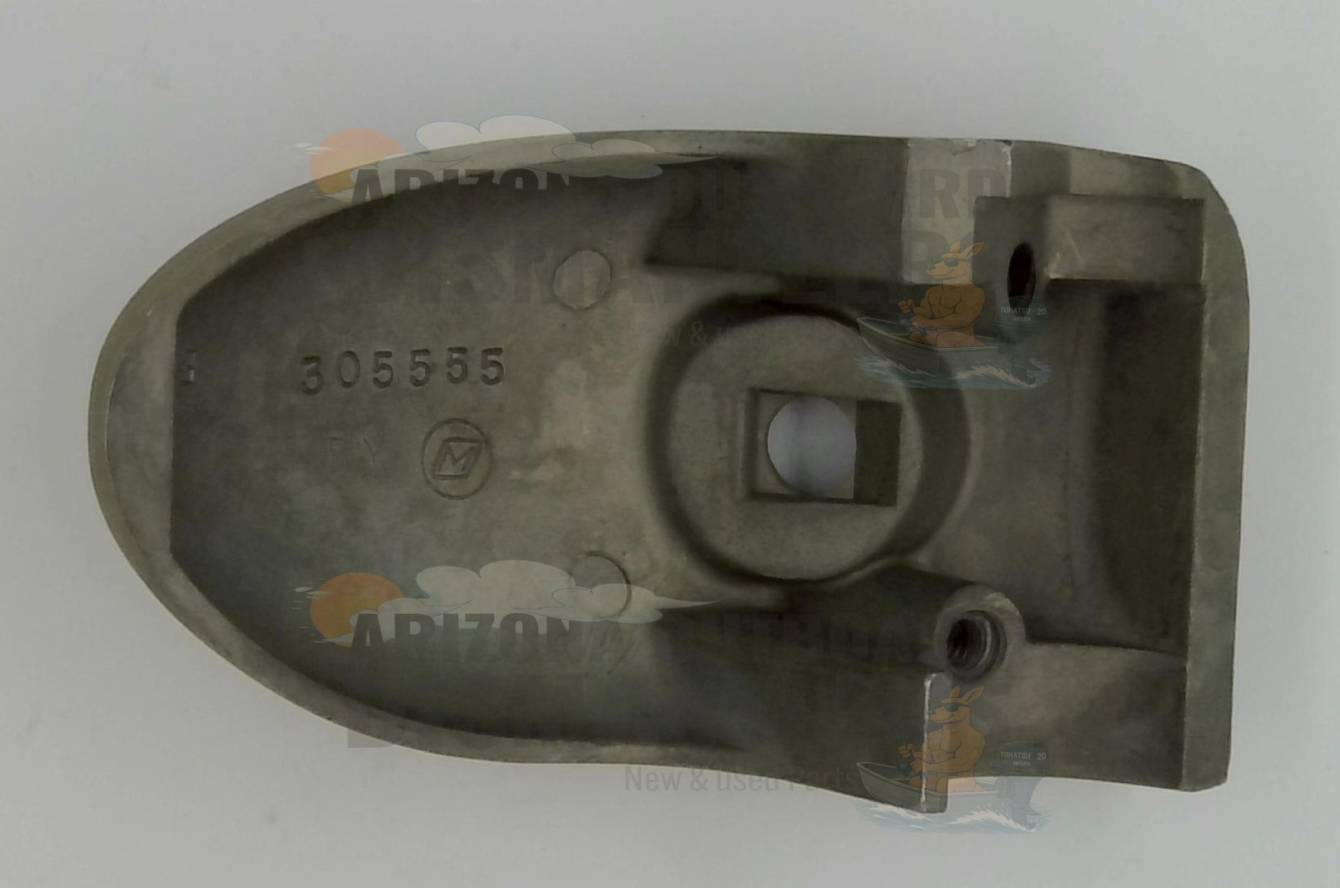 The 305555 lower unit housing restores the lower-unit gearcase body on many Johnson and Evinrude outboard engines. It aligns the cavitation plate, water-intake holes, and prop-shaft, ensuring proper gearcase fit and function.