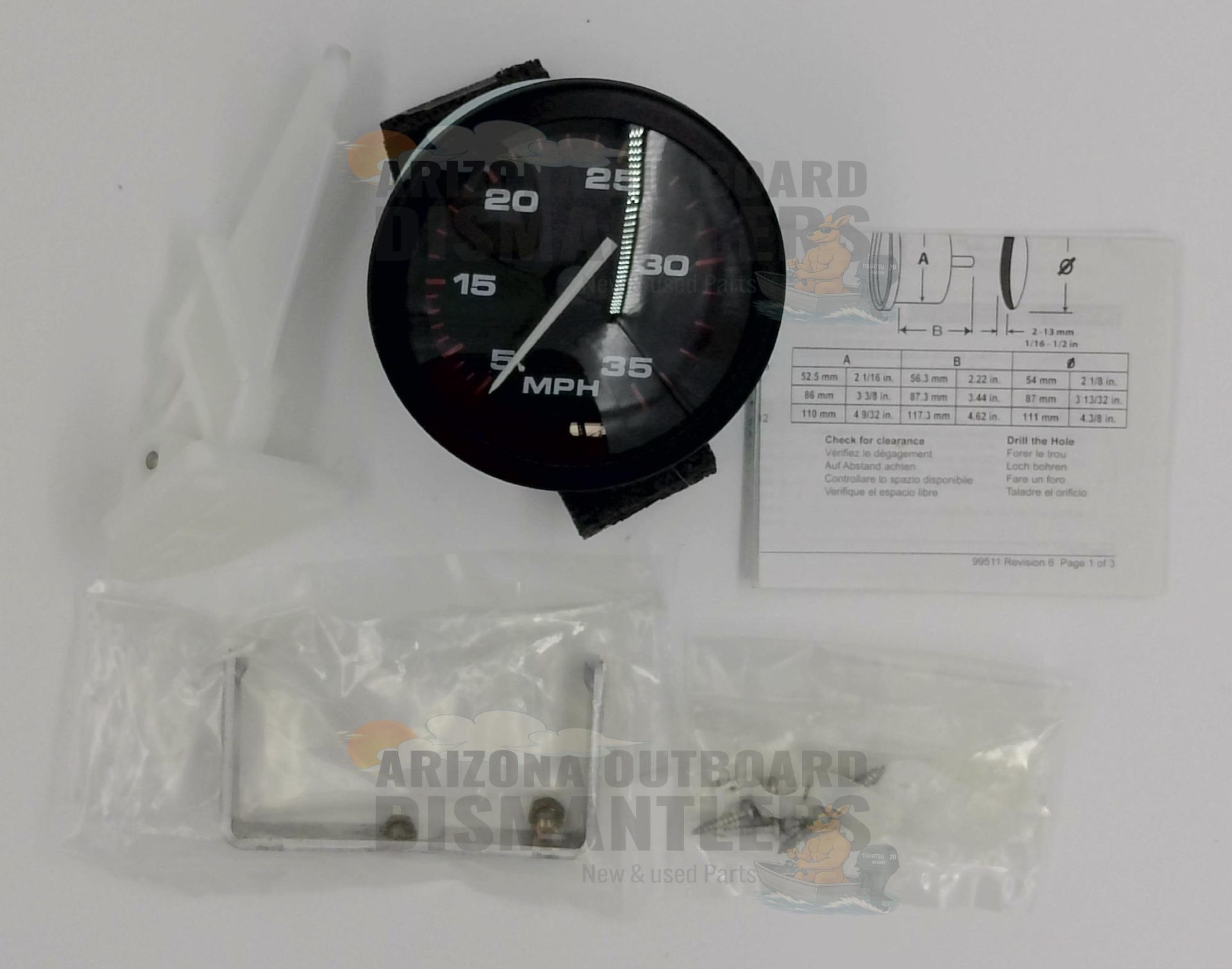 The Amega Speedometer Kit by Veethree (part 58342E) brings premium instrumentation to your marine craft. This kit includes a full 0-35 MPH speedometer gauge, a pitot hose and all necessary mounting hardware. Its design emphasises durability with a domed convex glass lens that resists scratching and the very low-profile bezel follows the lens curve to prevent water from pooling.