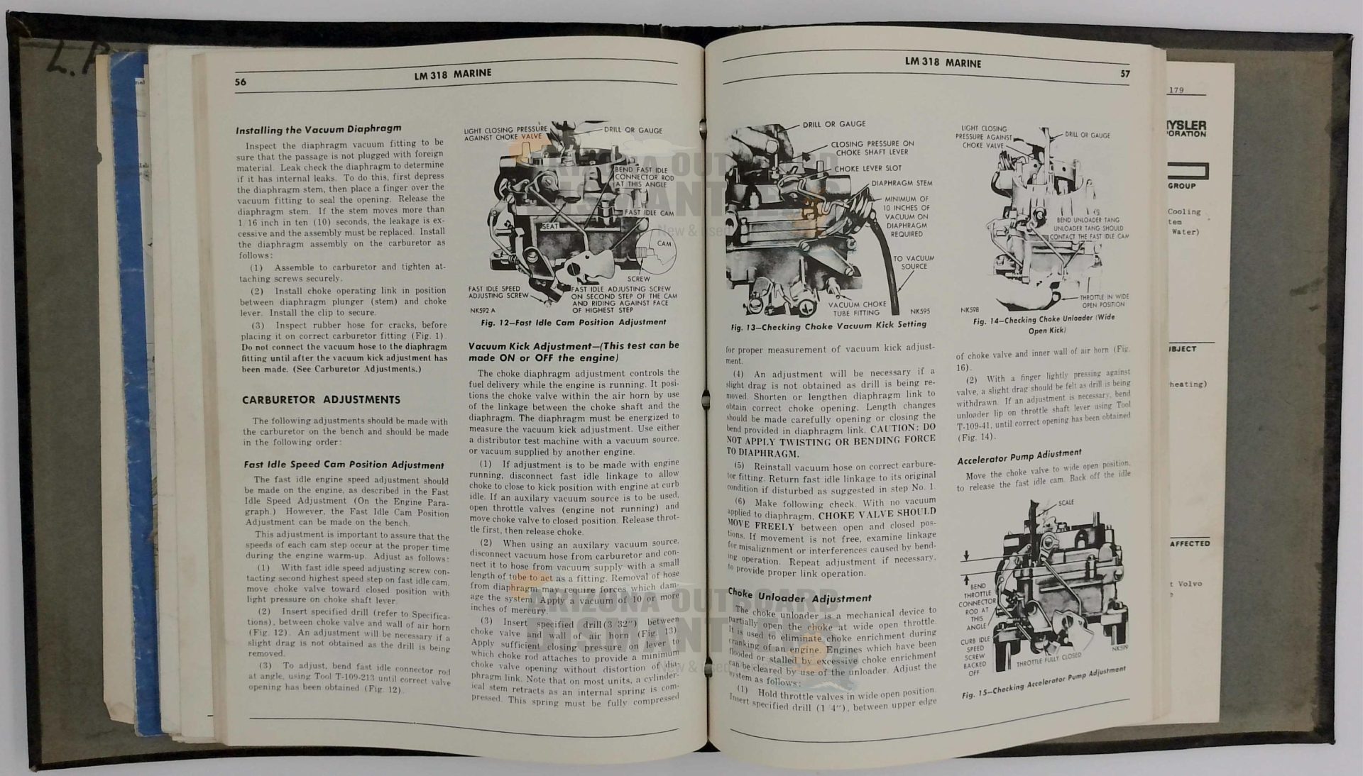 The LM 318 engine was produced between 1968 and 1974, and the manual likely dates to around 1970. Use this bundle to properly service, restore, or mount your Chrysler marine components with original factory guidance.