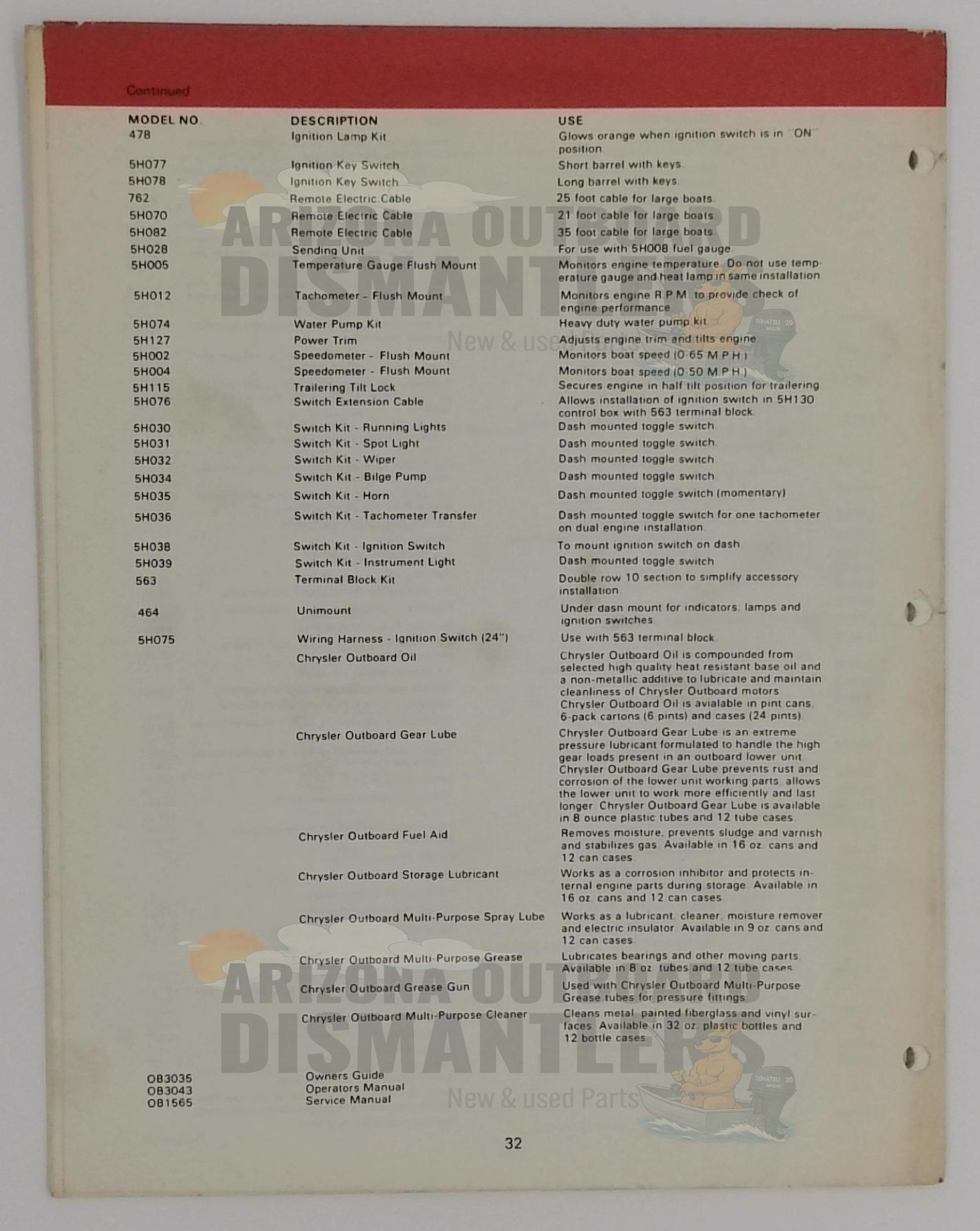 OB3083 Parts Catalog – Chrysler Outboard 70HP Skier (Models 709H9A, 709B9A)